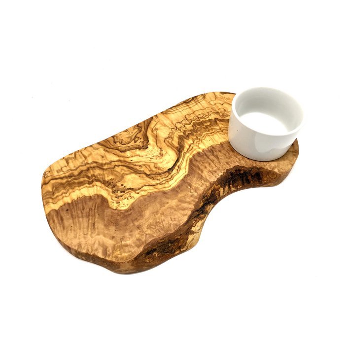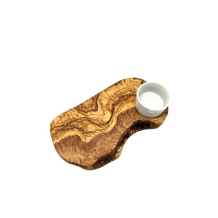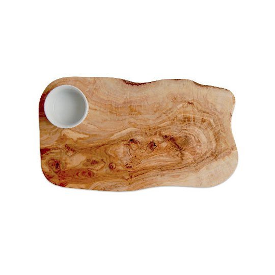 Burgerių lenta „RUSTIC“ – daugiafunkcis serviravimo ir ruošos pagrindas su porceliano dubenėliu padažams; dubenėlis tvirtai pritvirtintas siurbtuku, todėl neslysta. Alyvmedžio paviršius gražiai pristato mėsainius, sūrius ar užkandžius, o kompaktiškas dydis patogus ir kasdieniam pjaustymui.