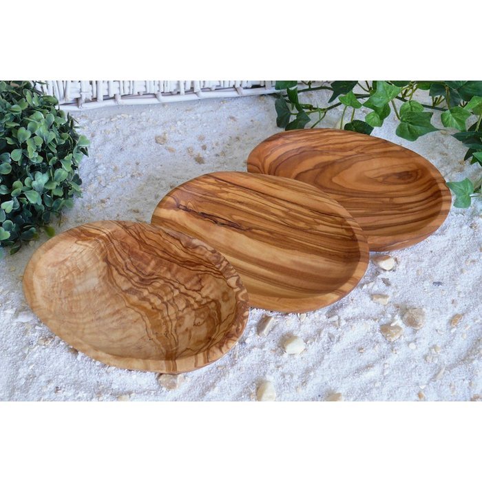 Rinkinyje yra: 3 ovalūs serviravimo dubenėliai iš alyvmedžio.
