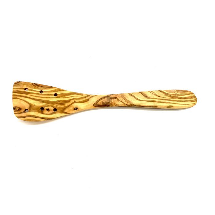 Mentelė „Olive wood“ – praktiškas įrankis kasdieniam gaminimui ir patiekimui. Alyvuogių medienos mentelė su skylutėmis. Puikiai tinka kasdieniam naudojimui.