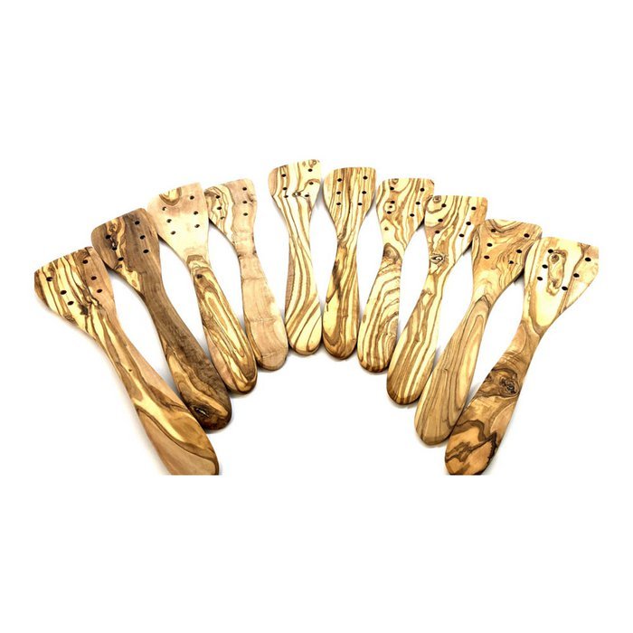 Mentelės „Su angomis“ – mentelė, kuri nebraižo dangų ir tinka apvertimui. Iš alyvmedžio medienos – su išraiškingu raštu ir jaukia išvaizda. Priežiūra paprasta: nuplaukite po tekančiu vandeniu ir retkarčiais patepkite lašeliu aliejaus.