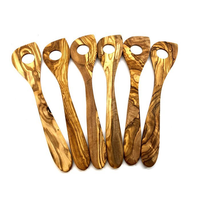 Rizoto šaukštai skirti tolygiam maišymui – galvutėje esanti anga judinant paskirsto ryžius, padeda išlaisvinti krakmolą ir išgauti kreminę konsistenciją be gumulų. Glotnūs kraštai nebraižo dangų, todėl šaukštai tinka visų tipų puodams ir keptuvėms. Patogiai guli rankoje ir puikiai pasitarnauja gaminant ne tik rizotą, bet ir košes, troškinius ar padažus. Priežiūra paprasta: plaukite po tekančiu vandeniu ir retkarčiais patepkite lašeliu aliejaus, kad išlaikytų tvarkingą išvaizdą.
