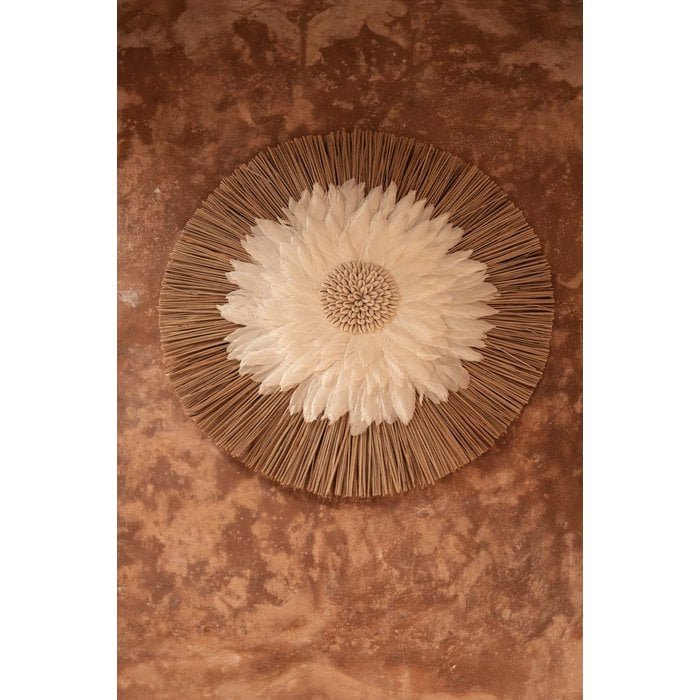 Ši sienų dekoracija pasižymi natūralios baltos spalvos dizainu, kuris puikiai tinka įvairiems interjero stiliams. Jo lengvas ir elegantiškas išvaizdas suteikia šviesos ir šilumos bet kuriai erdvei.