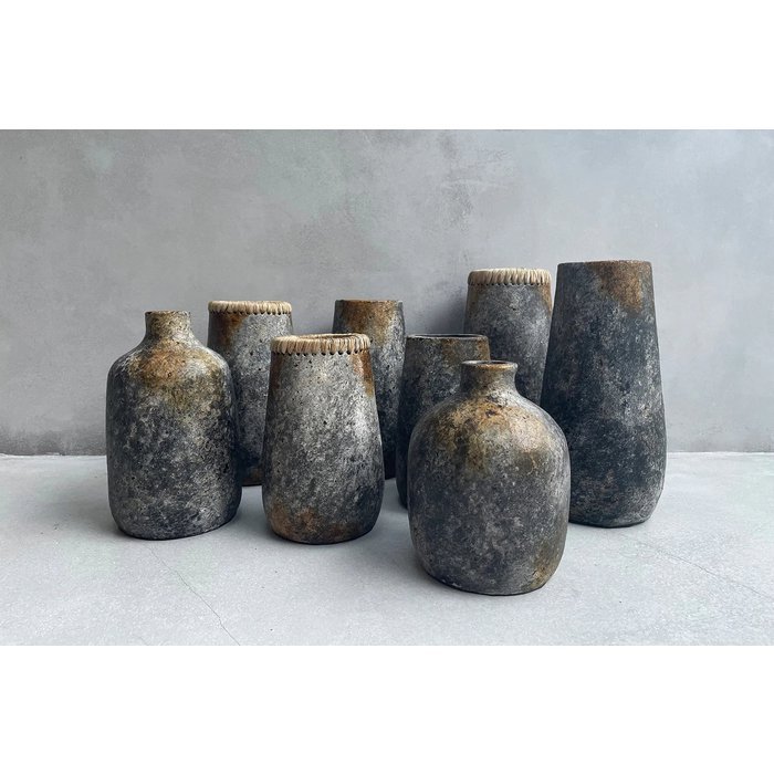 Ši vaza yra elegantiškas pasirinkimas, puikiai tinkantis bet kokiai erdvei. Jis pasižymi antikvariniu pilku atspalviu, kuris suteikia šilumos ir stiliaus. Vaza yra pagaminti iš kokybiškų medžiagų, užtikrinančių ilgaamžiškumą.