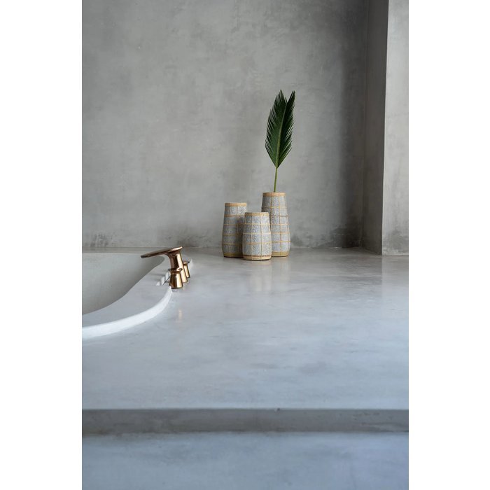Ši vaza pagamintas iš betono, suteikiantis natūralų ir modernų akcentą bet kuriai erdvei. Jis puikiai tinka tiek viduje, tiek lauke, leidžiantis augalams išsiskirti.